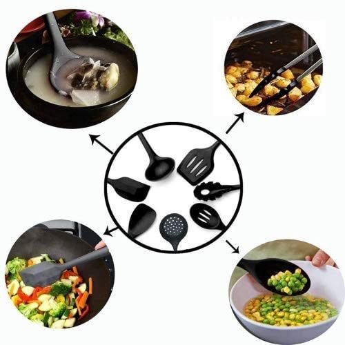 1.BEAUTIFUL DURABLE: The silicone cooking set is durable to use. They simply won't discolor, warp, melt or chip like your old plastic kitchen utensils or bamboo kitchen utensils. Scratch baking material such as soft and difficult to bend the head shaving cream easy clean indisputable residues do not h