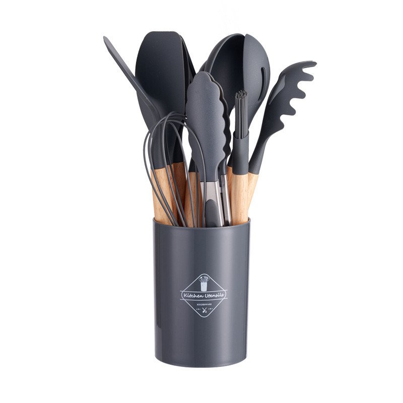Home > 11pcs Wooden Handle Silicone Kitchen Utensils Set Storage Bucket Non-stick Shovel Spoon Cooking Kitchen Utensils 11 Pieces Set Silicone Shovel Spoon