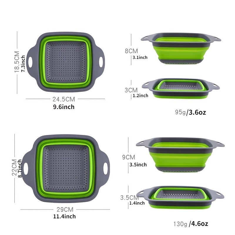Silicone Folding Drainage Basket; Fruit And Vegetable Cleaning Basket; Folding Filter; Colander Folding Drainer; Kitchen Storage Tool Material: Silicone Color: Green/blue/red Specifications: Large: 29 * 21.9 * 8.6cm/11.4 * 8.6 * 3.3inch Small: 24 * 18.4 * 7.5cm/9.4 * 7.2 * 2.9inch