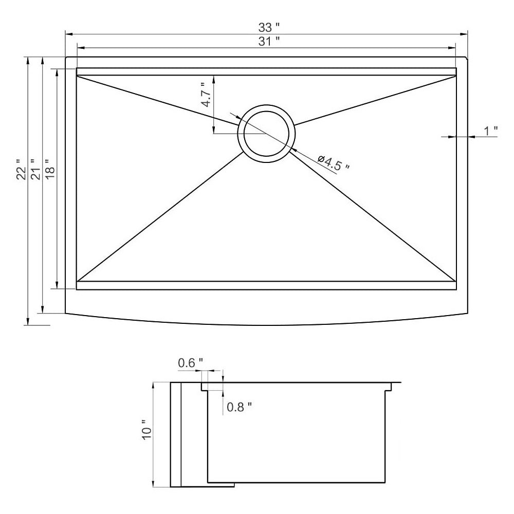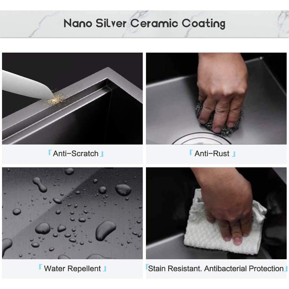 This farmhouse sink with X-shaped diversion water design, with a gently sloped bottom that prevents standing water inside the bowl fast drainage, no blockage.
