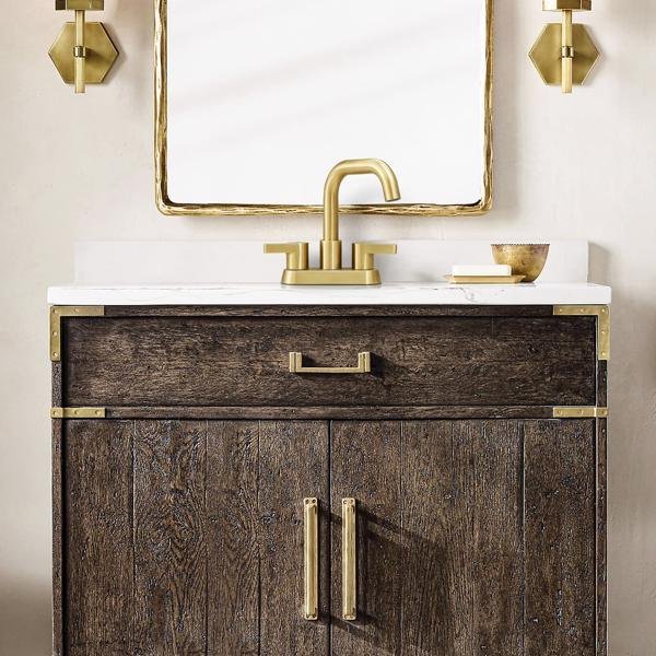 Home > Bathroom Faucet 2 Handle 4 Inch Centerset Bathroom Sink Faucets 3 Hole with Pop Up Drain and Water Supply Lines, Brushed Gold