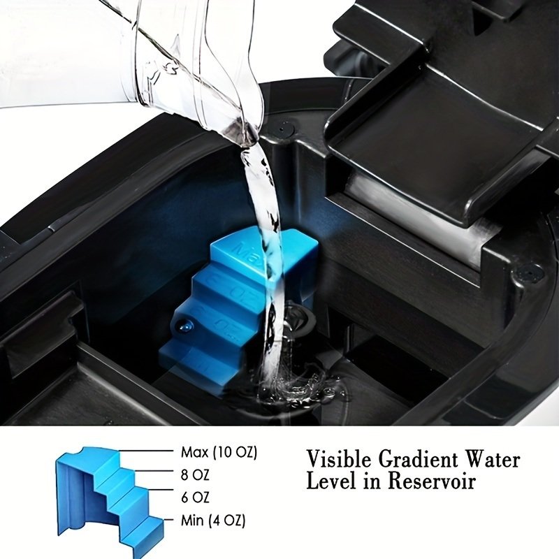 3, (LARGE MOUTH RESERVOIR WITH GRADIENT SCALE)Turn right to lock filter basket,water can be stay at upper reservoir when add,4-10oz amount to be controlled easily (Pls do not add water over max).After close lid,water will flow into internal tank through filter which can advoid powder or dust,ensure fresh coffee for each cup.