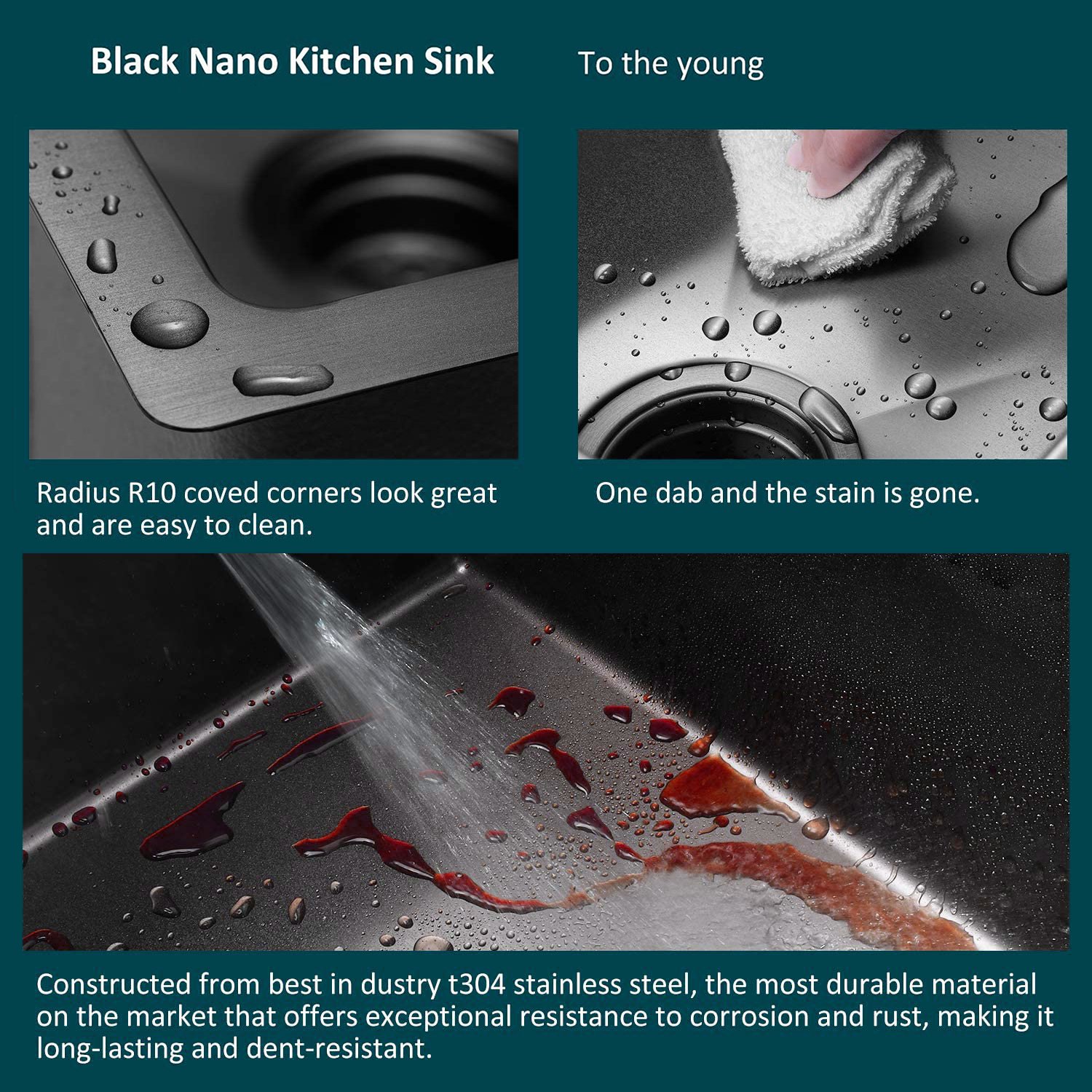 1.Constructed with premium 16-gauge thick grade SUS304 stainless steel for durability and strength.Undermount installation gives you counter space, seamless transition and easy-to-clean corners.