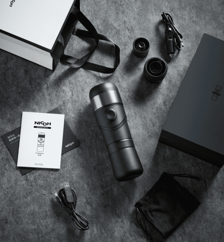 Portable design (car, office, home life, accompanying travel, outdoor camping) for freshly ground espresso