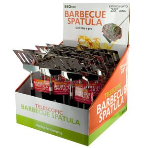 Introducing the Telescopic Barbecue Spatula, a versatile tool perfect for outdoor cooking enthusiasts. This spatula features a telescopic handle that extends for added reach and collapses for easy storage, making it ideal for compact countertop displays. Crafted for durability and convenience, it ensures reliable performance during grilling sessions. Featuring a strong metal slotted spatula tip with an extendable metal handle and an anti-slip grip. Measures approximately 9.5" long when not extended with a 2.5" wide tip. Extends up to 28" long. The countertop display comes with 24 pieces. The display measures 9.5" x 9.25" x 13.75".,Telescopic Barbecue Spatula Countertop Display,
