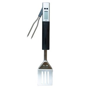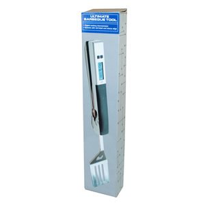 This Ultimate Barbeque Tool is a multi-function barbeque tool with digital cooking thermometer for accurate food temperature read-outs. The thermo-for holds in/out of the unit for safe storage. Also features a stainless steel spatula with a serrated and sharp edge for cutting and tenderizing the meat and a bottle opener. The barbeque tool is approximately 17.25" x 3.25" x 1.50" and comes packaged in a box.,Ultimate Barbecue Tool,