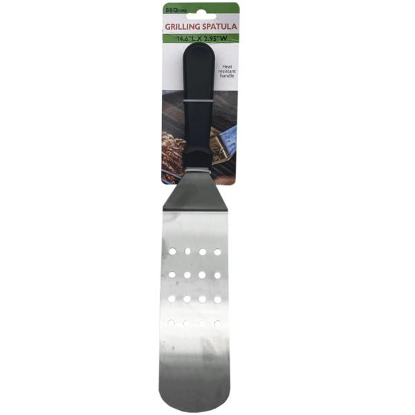 Introducing the 14.6" L x 2.95" W Grilling Spatula, designed with a heat-resistant handle for safe and comfortable use. The spatula area, measuring 2.75" x 8", is perfect for effortlessly flipping burgers, steaks, and vegetables. Built for durability and efficiency, this grilling spatula allows for precise handling of barbecue tasks. Ideal for any grilling enthusiast, it combines practicality and quality to enhance outdoor cooking sessions. The approximate measurements with packaging are 3" x 16.50".,Grilling Spatula,