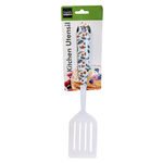 These Floral Design Melamine Kitchen Tools are a cooking must-have. Each tool is white melamine and has a floral design on the handle. There are 2 floral designs with patterns, and each one comes with 4 assorted cooking utensils - spoon, slotted spoon, spatula, and slotted spatula. The handy kitchen tools are perfect for a starter apartment, dorm room, or to complete your kitchen setup. The styles include blue leaves with orange flowers and a bold flower print with a bird. Each tool comes packaged on a hanging tie card. Sizes: spatulas 12.5", and spoons 12.65" long.,8 Assorted Floral Design Melamine Kitchen Tools,