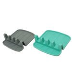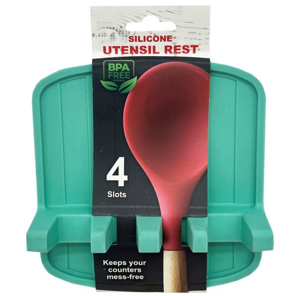 Say goodbye to cluttered countertops with this 4-slot Cooking Utensil Rest Organizer. This kitchen essential is designed to help you keep your cooking area clean, organized, and efficient. This must-have organizer streamlines your kitchen routine, making meal preparation more enjoyable and efficient. Whether you're a seasoned chef or a novice cook, this utensil rest is a must-have addition to your kitchen arsenal. With four generously sized slots, you can store multiple utensils simultaneously. Keep your spoons, spatulas, tongs, and more organized and ready for action. Cleaning up after cooking is a breeze with this utensil rest. Its smooth surface is easy to clean, helping maintain a tidy and hygienic cooking environment. It's also great for holding chopsticks, serving spoons, and other kitchen essentials. Plus, it's an excellent addition to your outdoor barbecue setup. Measures 5.5" x 5.45", with each slot measuring 1" wide. BPA-Free silicone. Comes packaged on a hanging wrap card. ,4-Slot Cooking Utensil Rest Organizer,