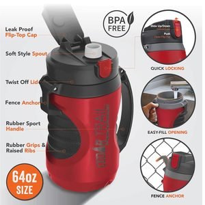 The Cedar Trail 64oz BPA Free Sports Jug is the ultimate hydration companion for athletes, outdoor enthusiasts, and anyone needing to stay refreshed on the go. Designed with a large 64oz capacity, this sports jug ensures you stay hydrated throughout the day, whether you're at the gym, on a hike, or at a sporting event. The jug features a leak-proof flip-top cap and a soft-style spout for easy, spill-free drinking. Its twist-off lid allows for easy refilling, while the wide opening accommodates ice cubes for an extra-cool drink. The durable rubber sport handle and raised rubber grips ensure a firm and comfortable hold, even during intense activities. It also comes with a fence anchor, making it easy to attach to any fence, perfect for team sports or outdoor workouts. Made from BPA-free materials, the Cedar Trail Sports Jug offers a safe, eco-friendly way to stay hydrated, with a quick locking system for added convenience and peace of mind. Stay cool and refreshed with this durable, versatile, and easy-to-use sports jug.,Cedar Trail 64oz BPA Free Sports Jug,