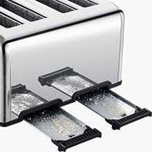 2 Removable Crumb Trays in back[1.5" EXTRA-WIDE 4-SLOT TOASTER] Extra Wide 4-slice Toaster for you; toasting thin bread; thick bagel; English Muffin with Easy![CANCEL; BAGEL and DEFROST]It features with Cancel; Bagel; and Defrost functions. Toasting the bread easy by pressing the button; breakfast will be ready fast. One press "CANCEL" to stop toasting; "Bagel" for thick bread/bagels; and "Defrost" for recover room temp.[6 TOAST SHADE SETTINGS]6-level settings and Automatic Pop-Up Toaster - 6 accurate shade modes for your option to prepare your favorite taste bread. Warm-up; light brown; golden brown; crispy; and dark satisfied with your taste.[DUAL INDEPENDENT CONTROL PANELS]Dual Independent Control Panels It equivalent to 2 toasters; prepare breakfast twice fast than a 2-slice toaster! Easy to Clean with Removable Crumb Tray!